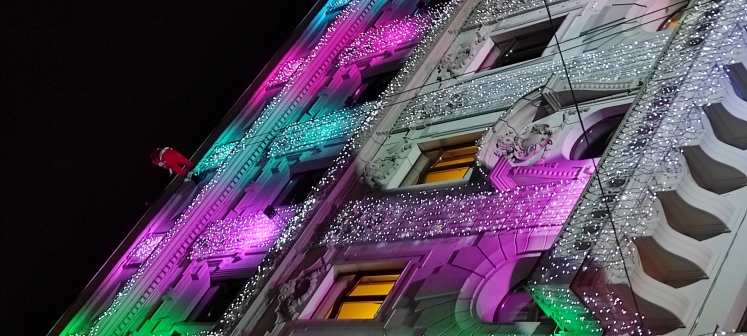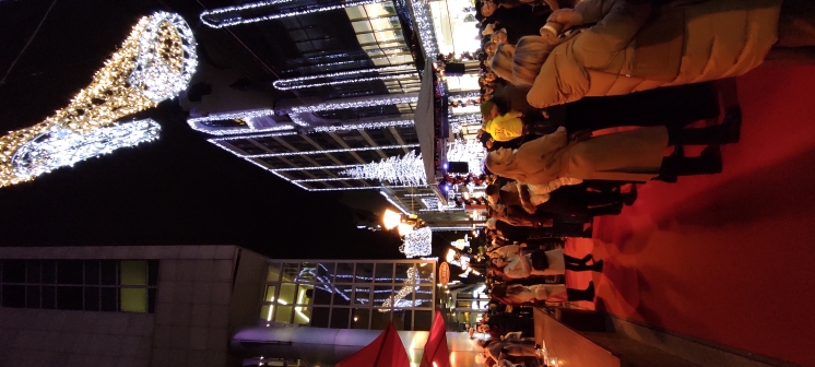 Azután Zsófi a hagyományoknak megfelelően felgyújtota az utca fényeit, fantasztikus fény-figurákragyogtak fel a fejünk felett, fényfüzérek borÍtották a házakat... A közönségből leginkább óh, hűű, és hasonló hangok hallatszottak a meglepetéstől.