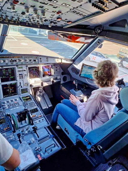 We met in the early hours at Budapest Airport to fly to Rome, thanks to the support of the WizzAir Foundation. Although Klára had flown before, it was a long time ago, so she was excited about the takeoff. Despite the early departure, she was looking out the window throughout the flight, and her joy was boundless when, after landing, she was allowed to enter the cockpit and sit in the first officer’s seat.