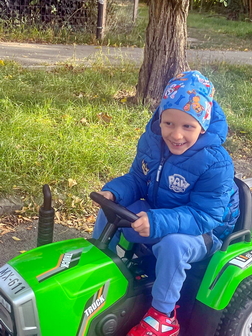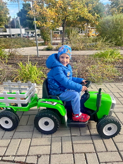 Tibuci is a very cheerful and smiling child. His dream was to have a tractor that he could drive. When he saw the tractor, his face was simply glowing with joy. As soon as it was as-sembled, he headed straight to the playground to drive his tractor on the “roads.”