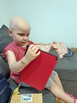 He has been in Pécs for treatment since December. He and his mother are in a foundation-run accommodation. I visited Zoli here and handed over the much-awaited gift. He was very happy and started unpacking his toy. He thanks it to everyone.