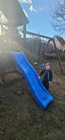 Mónika egy saját játszótérre vágyott, mászókával, csúszdával, és 2 hintával, hiszen hintázni is élvezetesebb társaságban. A kislány vágya hamar valóra vált, még a hideg téli idő beállta előtt udvarukba költözött az áhított játszótér.