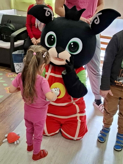 Bing nyuszi örömmel tett eleget a kérésnek, és fergeteges hangulatot teremtve szórakoztatta a kisgyerekeket. Szonjának és barátainak is hatalmas élményt jelentett ez a délelőtt.