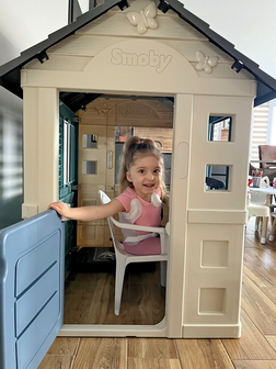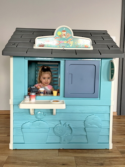 Természetesen a kisházikó, ami Liána kívánsága volt, kék és ’cukrászdaként’ is üzemel, ahol Liána és testvérei az átadás pillanata óta naphosszat sütik a süteményeket és kiszolgálják a hozzájuk érkező vendégeket.