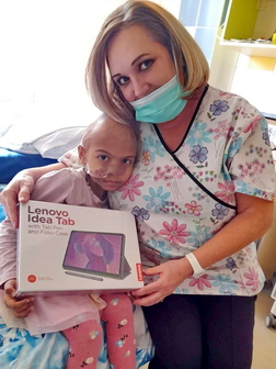 Janka szülinapjára meg is kapta a tabletet a Csodalámpa Alapítványtól. Nagyon boldog volt, hogy a különleges alkalomból a sok lufi és torta mellett magáénak tudhatja a tabletet is!