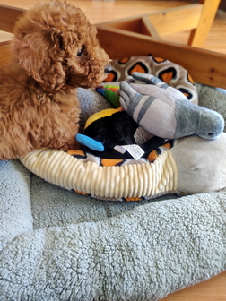 A kutyus és újdonsült gazdája szinte azonnal egymásra találtak. A kisfiú büszkén mutatta meg új barátjának kedvenc plüss állatkáit: a lámát, a tukánt, az óriáskígyót, a csirkét, a méhecskét, a galambot. Luka lelkesen fedezte fel a játékokat körbe-körbe szaladgálva a szobában, mígnem egy nagy plüss kutya is előkerült, tovább színesítve a közös játék örömét.